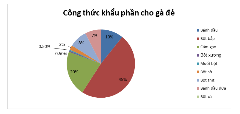 Ngoài đạm và chất bột đường thì việc cung cấp các chất dinh dưỡng khác cũng không kém phần quan trọng, ở mỗi giai đoạn phát triển cần bổ sung các chất khác nhau, bà con có thể tham khảo công thức khẩu phần ăn cho gà đẻ sau: